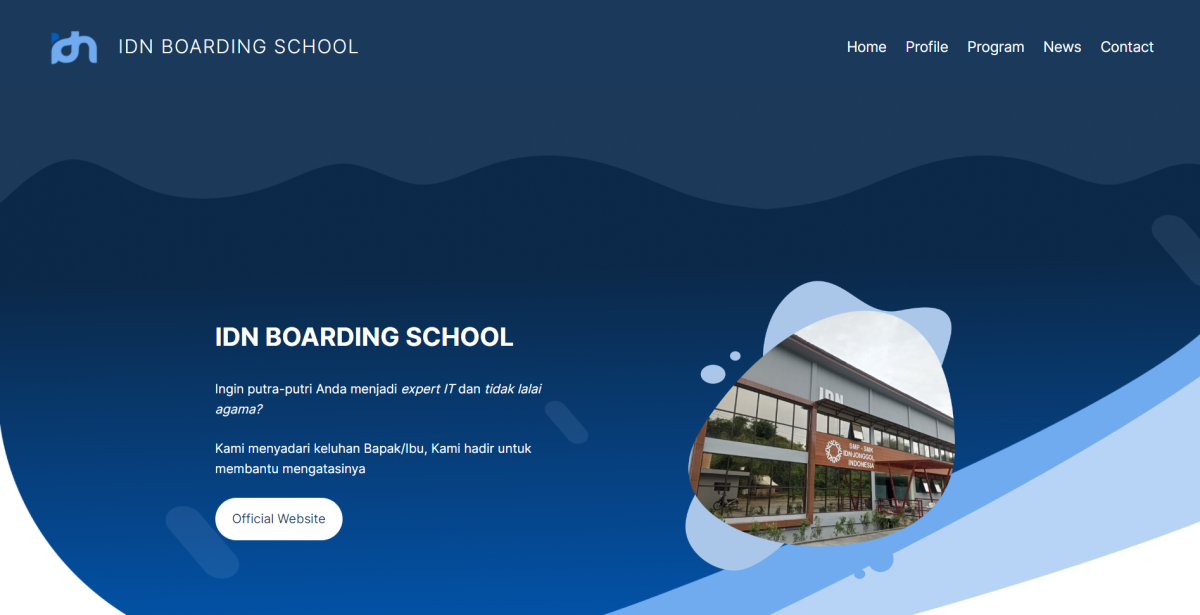 For navigation/pages here there is Home, Profile, Program, News and Contact! You can see and find out about IDN Boarding School. And here I will explain a little about “what we can find on the My School Website?”