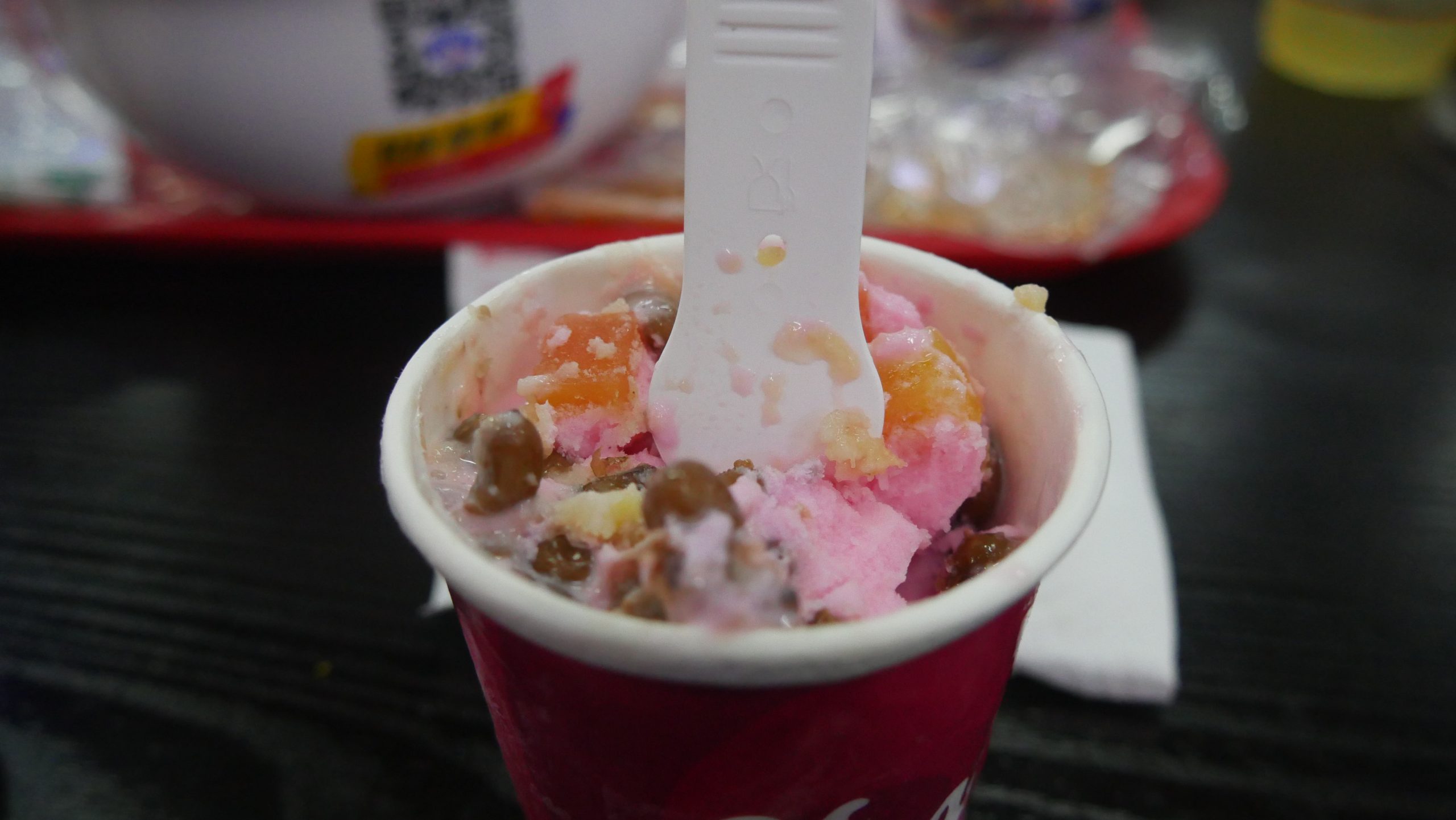 Nona Ice, with the onside is ice, tape, red bean, green beand and also papaya ! it;s fresihng !!